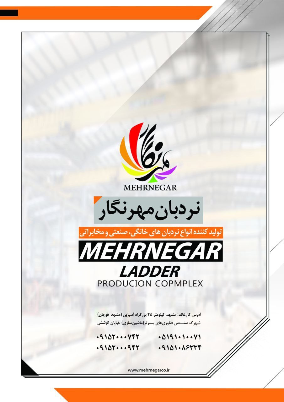 1399-1388 Mehrnegar Ladder Located in 4 km of Kalat Road Mehrnegar Metal Industries known as Mehrnegar Ladder in 2009 in the field of manufacturing and manufacturing metal artifacts and specialized metal ladders